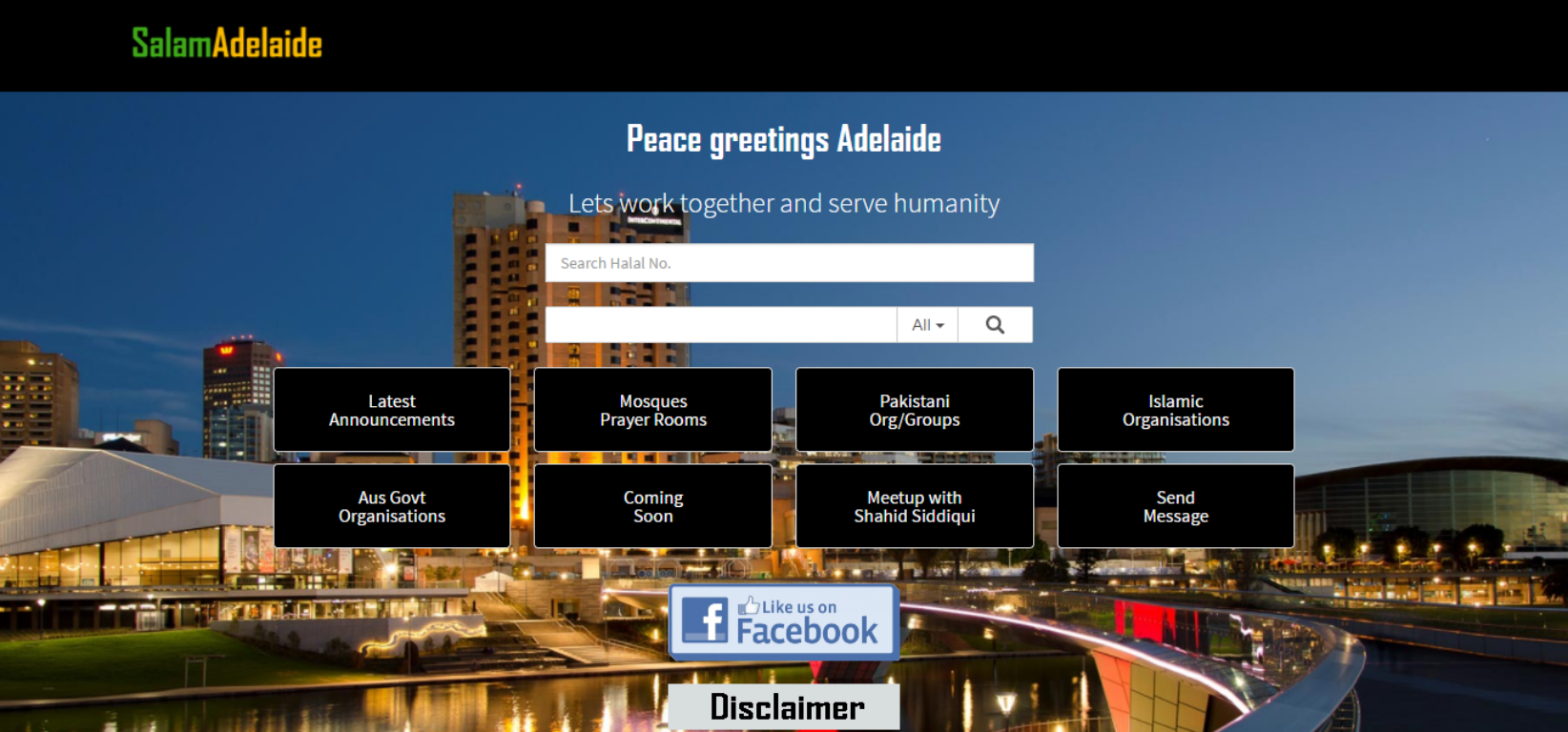 Peace greetings Adelaide, Lets work together and serve humanity. It is Abour Business and Islamic religion info about Hala food and Mosques Prayer.
